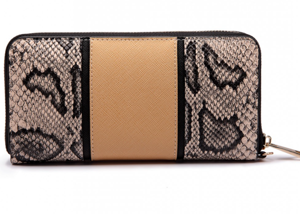 Miss LuLu lange portemonnee met slangenprint. Ritssluiting bovenaan, Binnenverdeler voor munten, bankbiljetten en pasjes. Gemaakt van hoogwaardig kunstleer. Perfect accessoire dat bij elke handtas of outfit past.